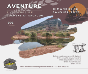 Au fil d’un itinéraire offroad d’environ 150 km, partez à la découverte des dolmens mystérieux nichés dans la garrigue, du prieuré de Saint-Michel-de-Grandmont, et des paysages spectaculaires du lac du Salagou, où les terres rouges contrastent avec l’eau bleu azur.