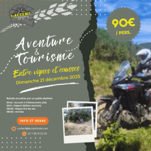 L’ACCENT MOTO vous invite à explorer les plus belles régions à travers nos circuits de randonnées, sur route ou en tout-terrain. Osez l’aventure et laissez-vous porter par l’appel du voyage en découvrant les trésors de l’Occitanie.